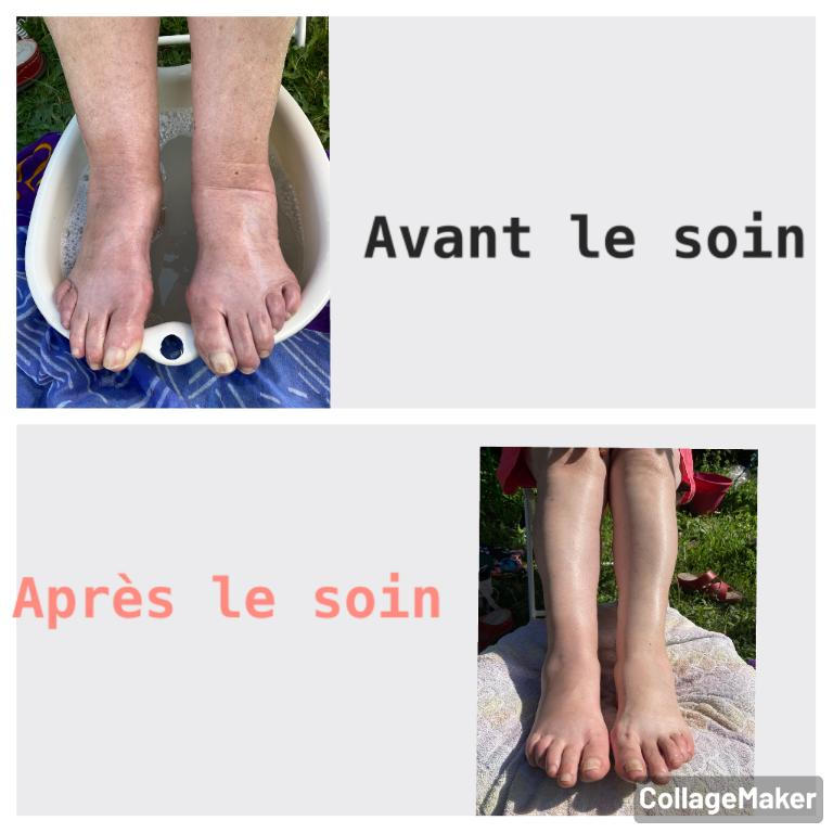 Bain des pieds avec de l'huile pour un assouplissement des tissus, puis lavage des pieds avec un gel rafraîchissant pour une décongestion les tensions.